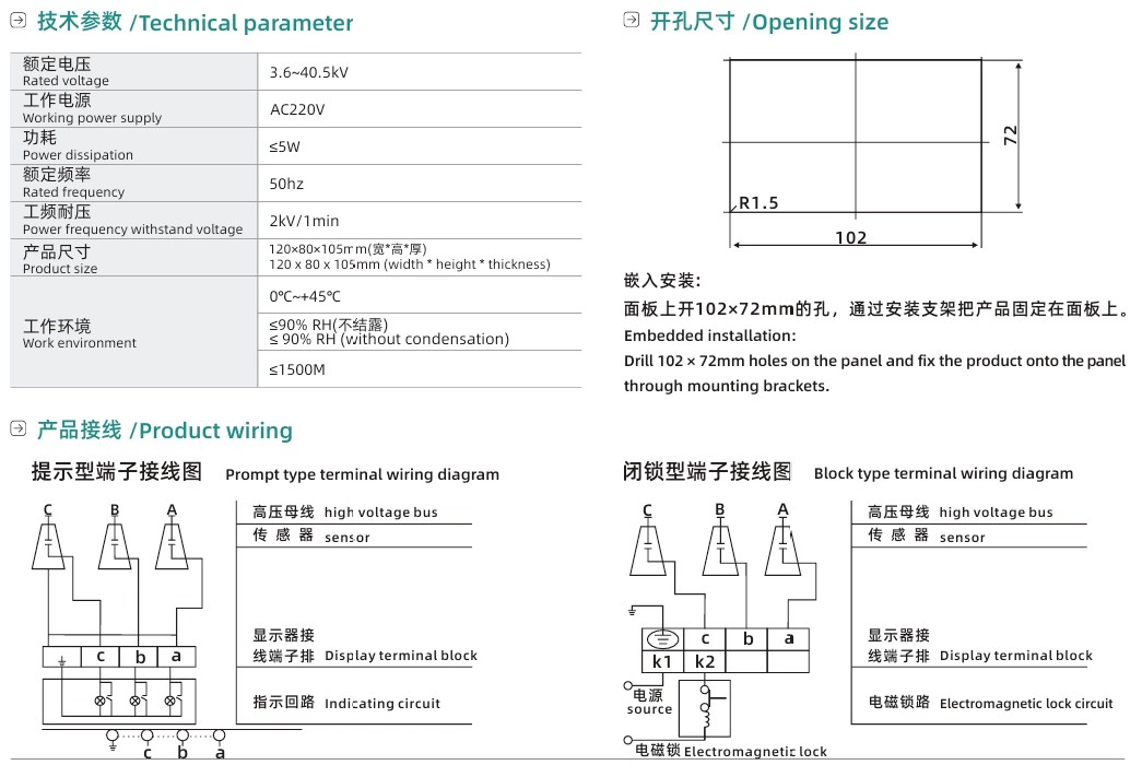 Бұл тірі дисплей құрылғысы нақты қуаттандыру күйі маңызды болып табылатын ішкі электр жүйелерінің негізгі нүктелеріне орнатуға арналған. Ол жоғары вольтты тарату жабдықтарының кең спектрімен үйлесімді, соның ішінде: