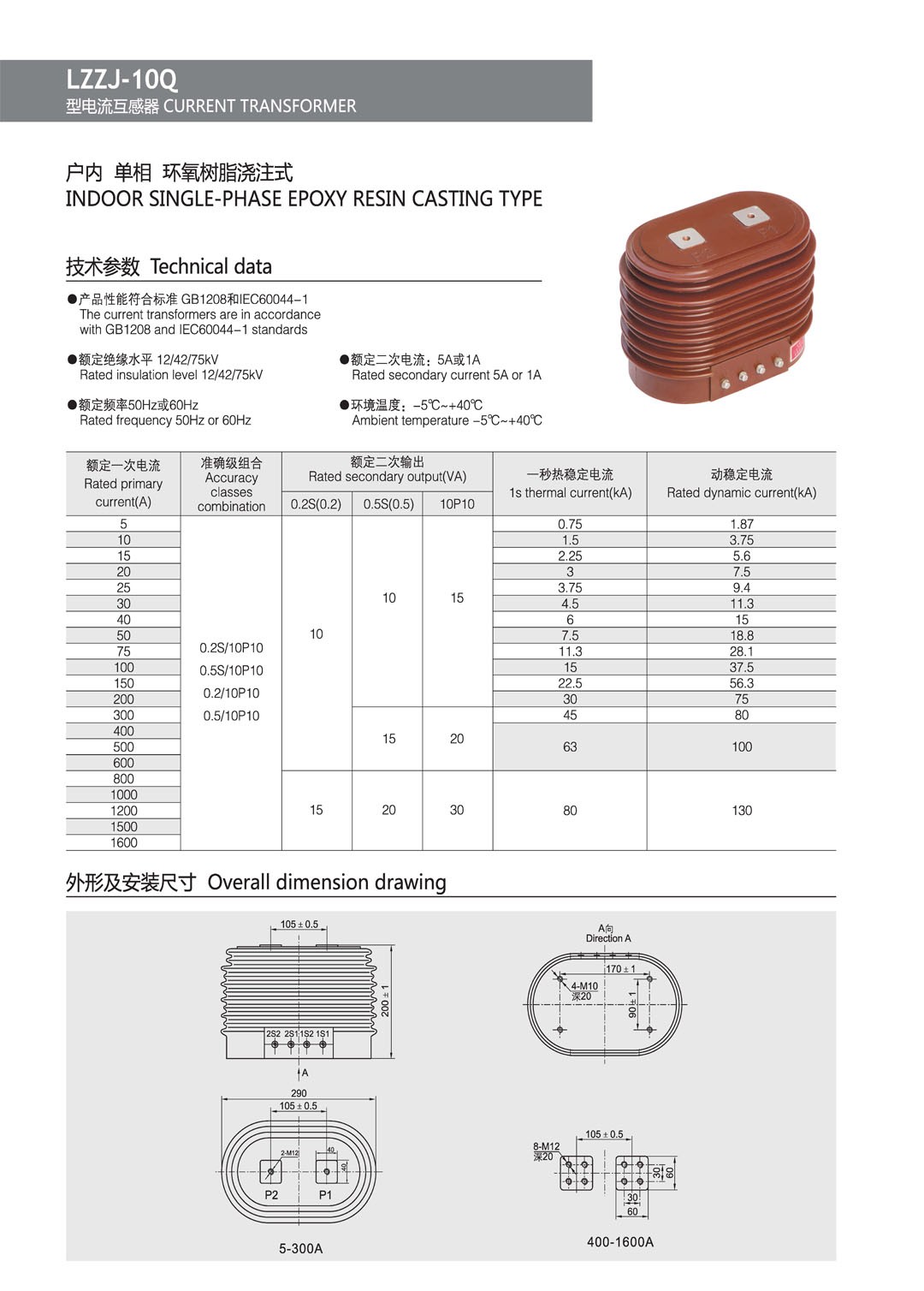 LZZJ-10Q ток трансформаторы жабық түрдегі күшейтілген ток трансформаторы болып табылады. Ол жоғары өткізгіштігі бар сақиналы өзегі бар бастапқы және қайталама орамдарды біріктіретін толығымен жабық эпоксидті шайыр құрылымын пайдаланады.